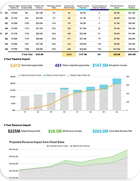 This guided model illustrates how partnering with AWS and adding an AWS marketplace and co-selling motion can impact your 2 year pipeline and revenue plan.